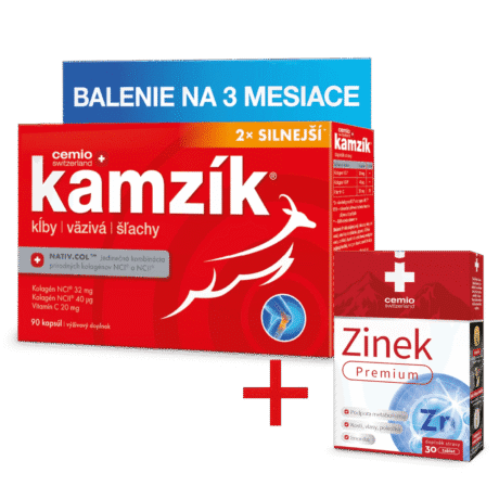 Cemio KAMZÍK® je špičkový kĺbový prípravok, ktorý jediný v Slovenskej republike obsahuje kombináciu natívneho kolagénu NCI®, natívneho kolagénu NCII® a vitamínu C. Predstavuje jedinečné spojenie rýdzej prírody a špičkovej technológie. Teraz je navyše 2× silnejší.*