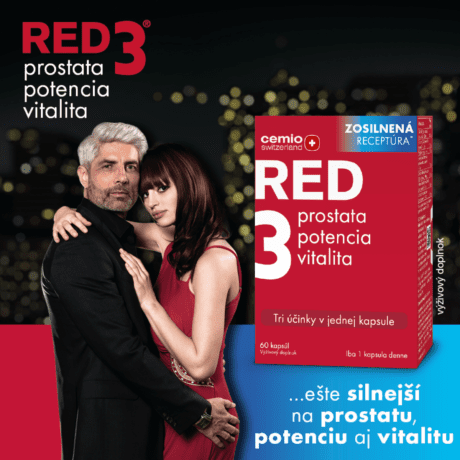 Originálny švajčiarsky výživový doplnok Cemio RED3 teraz ešte silnejší na prostatu, potenciu a vitalitu. Obsahuje unikátnu kombináciu klinicky overeného extraktu slivky africkej pre podporu funkcie prostaty, macy peruánskej pre zlepšenie mužskej potencie a sibírskeho ženšenu pre zvýšenie vitality a celkovej kondície. Navyše je obohatený o ďalšie bylinné extrakty, ako sú ľan siaty, kustovnica čínska, sója fazuľová a gumojilm brestový, ktoré majú tisícročnú tradíciu v podpore mužnosti.