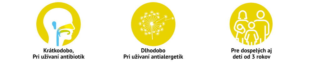 potrebné – v hrdle, nose a strednom uchu. Obsahuje 3 miliardy baktérií v dennej dávke.