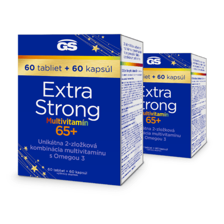 výživový doplnokPrečo si vybrať GS Extra Strong Multivitamín 65+? GS Extra Strong Multivitamín 65+ je jediný prípravok špeciálne vyvinutý pre ľudí starších ako 65 rokov. Kombinácia vitamínu D s koncentrovanou formou omega-3 kyselín a navyše ďalších 27 vitamínov a minerálov na podporu imunity, vitality, mozgu a zraku. To všetko v 1 tablete a 1 kapsule denne.