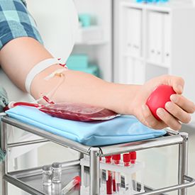 Pohľad na ruku muža, ktorý práve daruje svoju krv a preto bude potrebovať doplniť železo.